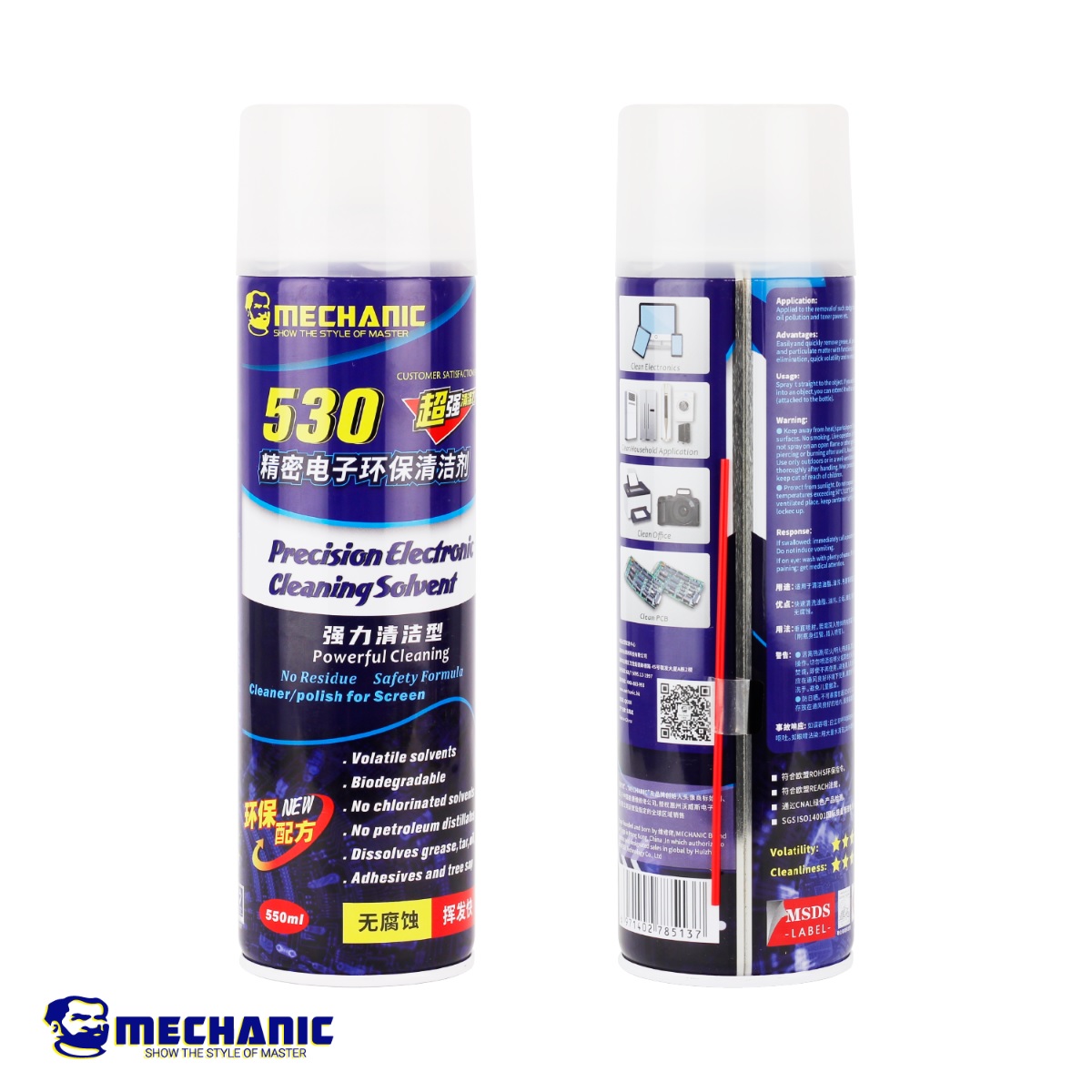 اسپری تمیز کننده و پاک کننده چسب ال سی دی مکانیک Mechanic 530