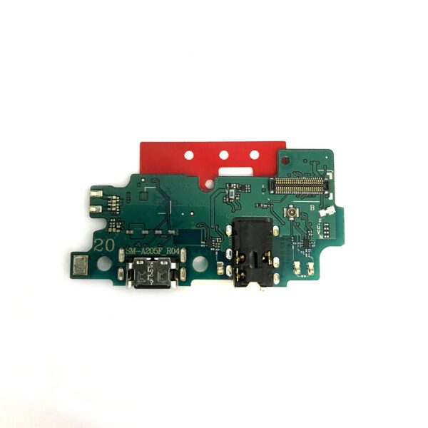 برد شارژ از قطعات داخلی و حایز اهمیتی است که وظایف مهمی را برعهده دارند. این برد شارژ دارای سوکت شارژ، سوکت هندزفری و میکروفن است. با اینکه برد شارژ و میکروفون دو قطعهی متمایز از یکدیگر هستند اما بر روی یک قطعه قرار گرفته اند. برد شارژ گوشی سامسونگ گلکسی A20 امکان شارژ نمودن باتری دستگاه را با انتقال جریان به برد اصلی را فراهم میکند. میکروفون گوشی سامسونگ گلکسی A20 در لبه ی پایینی گوشی قرار گرفته است که در تمامی گوشیهای هوشمند معمولا جایگاهی ثابت داشته و باعث ضبط صدا میشود. برد شارژ و میکروفون این دستگاه ممکن است در اثر ضربه و یا خیس شدن دچار اتصالات داخلی شده و کارایی خود را از دست دهد.